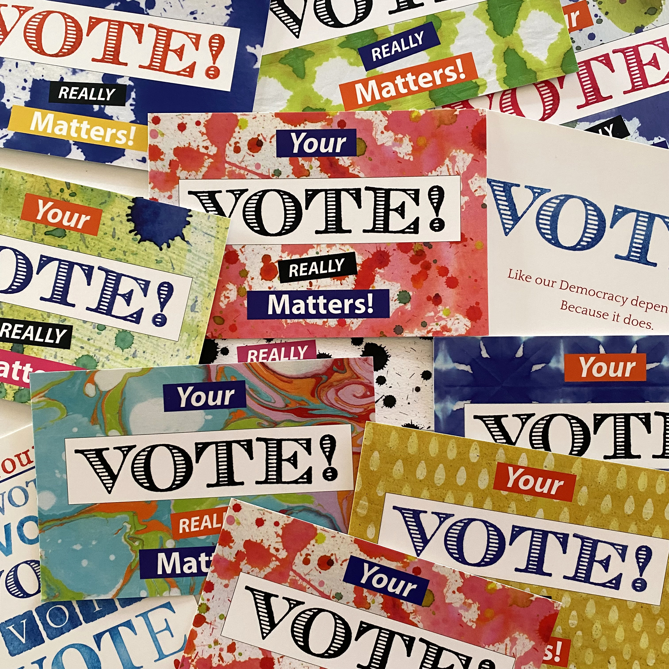 She called me, finally, after I’d texted her about a new Postcards to Voters campaign, It was my peace offering prompt to get the ball rolling.